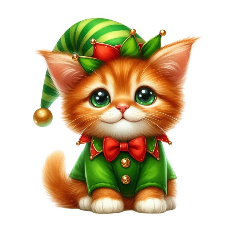 Watercolor-Christmas-Kitten-Clipart-127441905