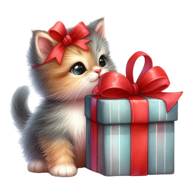 Watercolor-Christmas-Kitten-Clipart-127441905