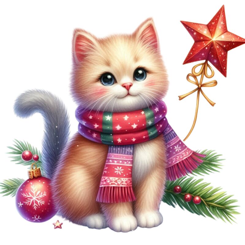 Watercolor-Christmas-Kitten-Clipart-127441905